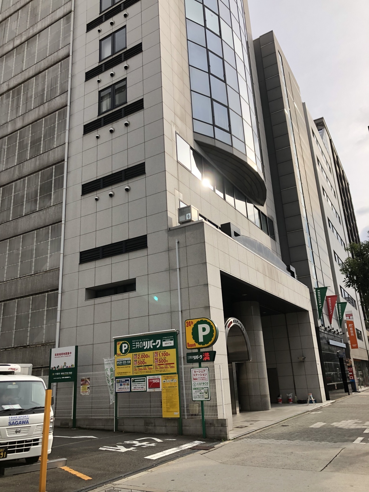 ローソンの横の道路を挟んだ駐車場の隣のビルが谷町アークビルです。