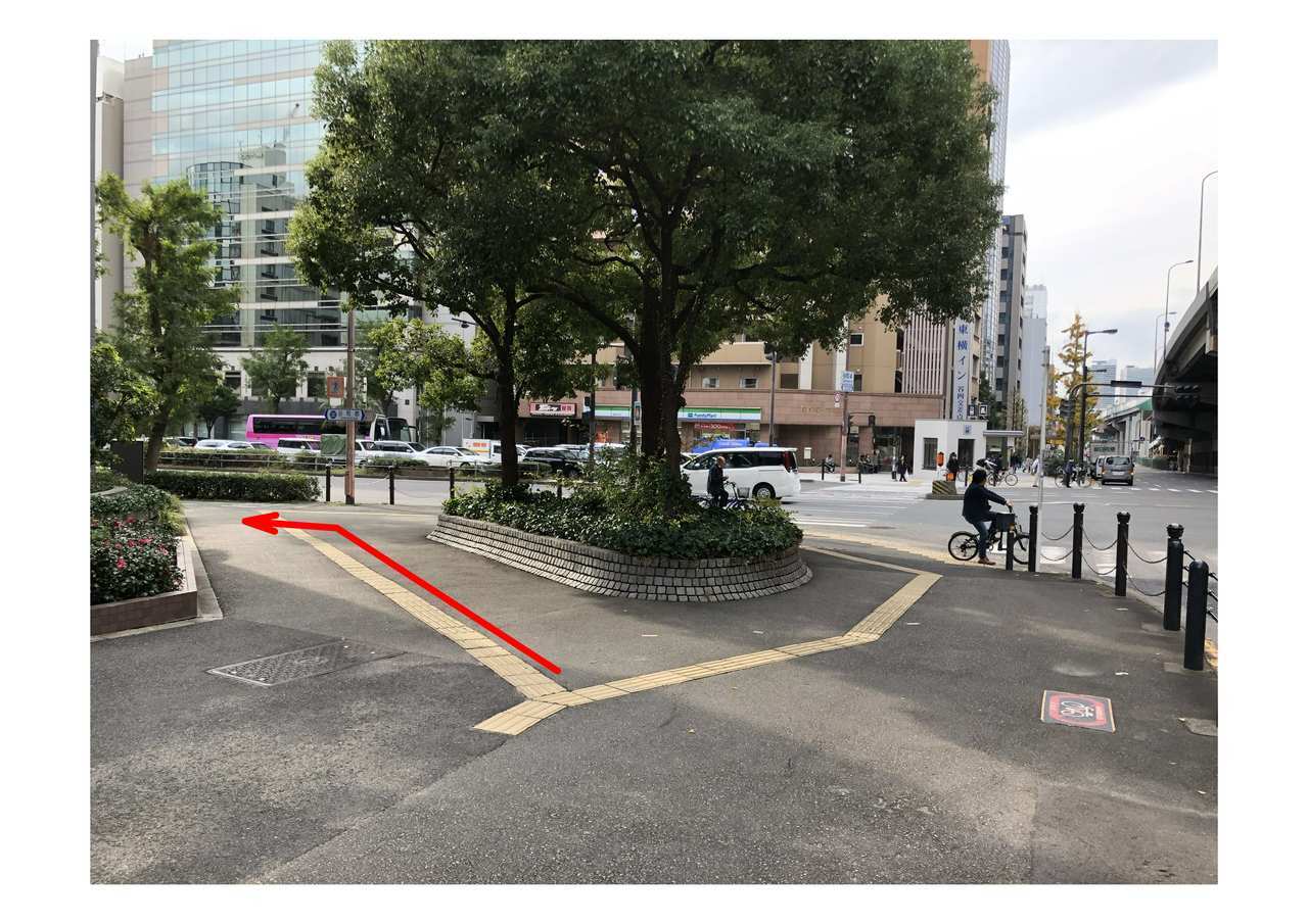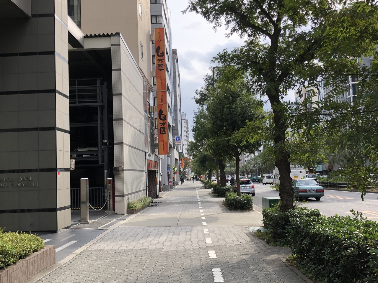 「谷町四丁目」駅7番出口を出た所です。出口を出てすぐ手前に横断歩道がありますが、渡らずそのままビル沿いを道なりに南へ(谷町筋を南へ)向かってください。